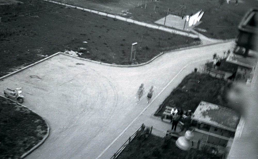 Двор д.5 к.3 по ул. Героев Панфиловцев. За пешеходной дорожкой вскоре появилась хоккейная коробка, которая простояла до начала 90-х годов. В доме появилось первое транспортное средство - мотороллер Тула. 1969 год.