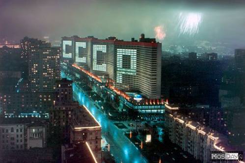 Проспект Калинина. Праздничная подсветка, в окнах домов-книжек зажигался свет, высвечивая "СССР" (или "1 МАЯ", "9 МАЯ", "КПСС"). 1970-е годы.