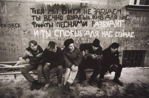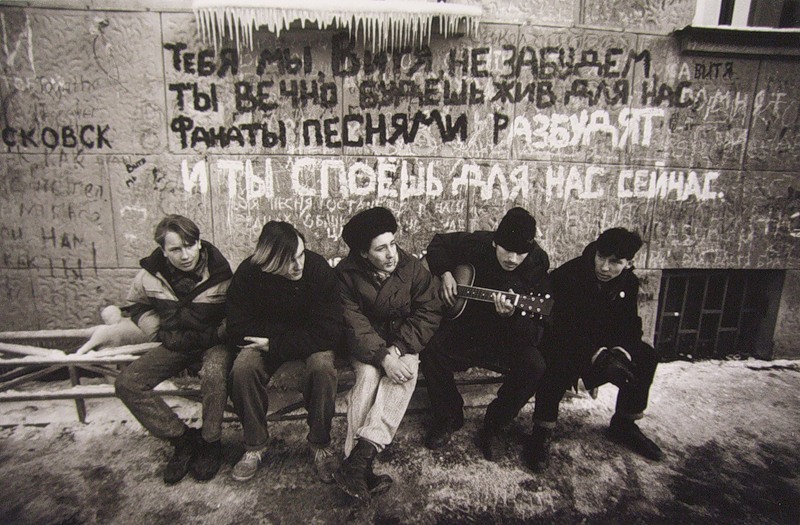 Кривоарбатский переулок. Стена Виктора Цоя на Арбате. 1994 год.